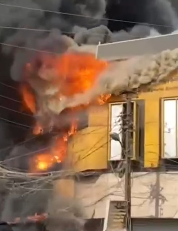 القطوعات تعيق وصول فرق الإطفاء الى حريق بناية النصر
