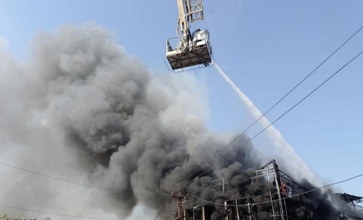 إنقاذ عامل أجنبي بإخماد حريق كبير في ساحة النصر