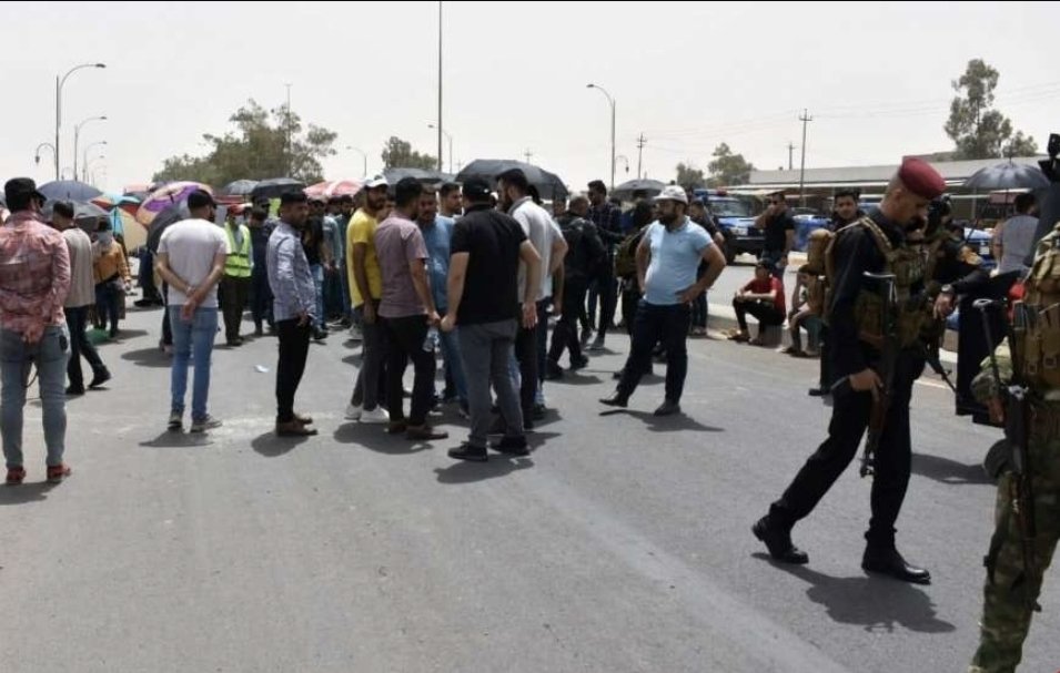 عقود نفط الشمال يتظاهرون امام مبنى محافظة كركوك