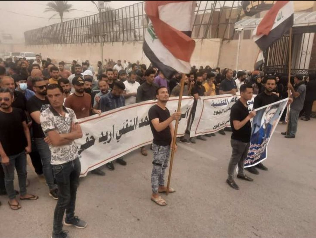 العشرات يتظاهرون أمام مبنى حكومة ديالى وسط بعقوبة للمطالبة بالتعيينات