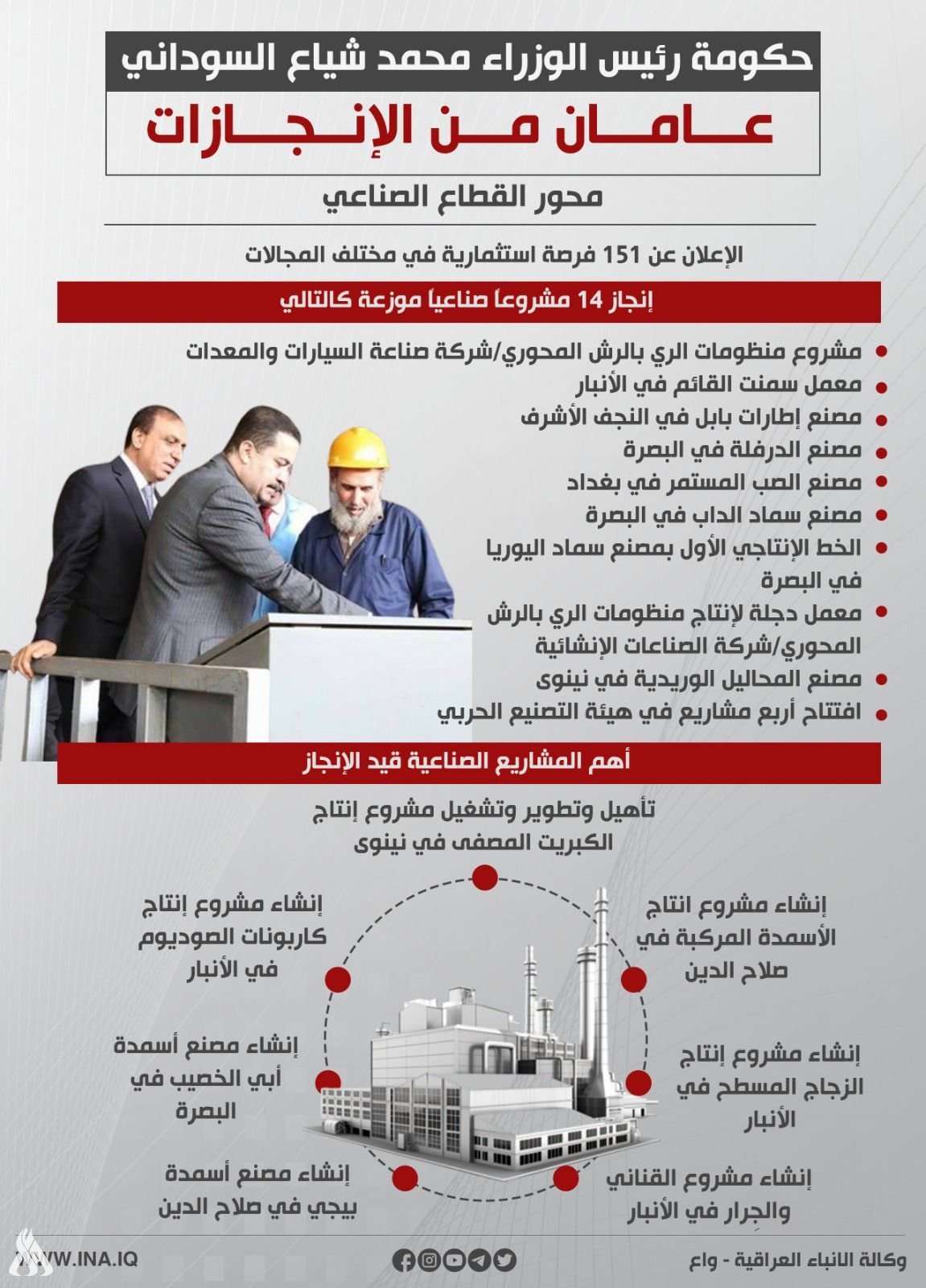 محور القطاع الصناعي.. عامان من الإنجازات لحكومة رئيس الوزراء محمد شياع السوداني