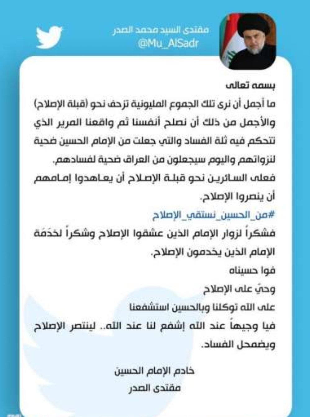 تغريدة جديدة للسيد الصدر
