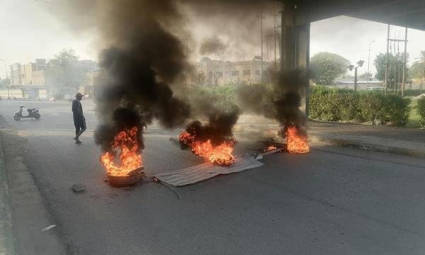 عشرات المحتجين يغلقون العديد من الطرق الرئيسة والجسور في الناصرية