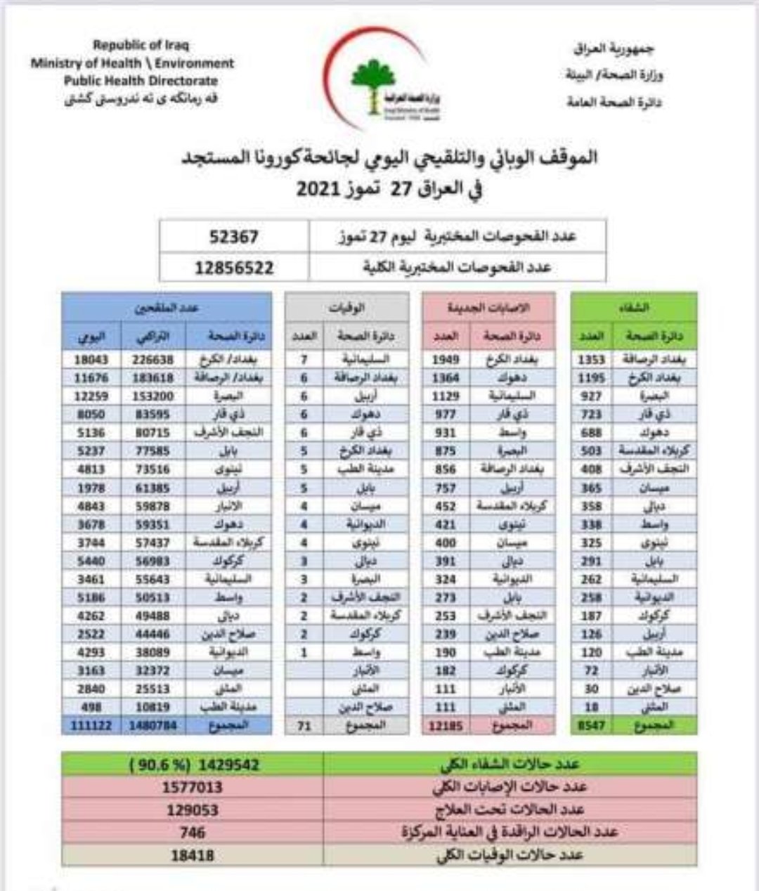 تطور خطير.. الصحة تسجل أعلى إصابات بكورونا لليوم الثاني في العراق