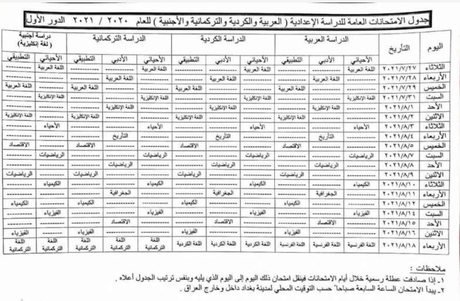 التربية تعلن جدول الامتحانات العامة للدراسة الاعدادية "الدور الأول"