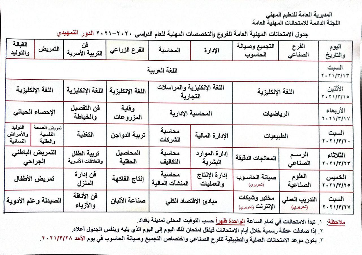 التربية تعلن جدول الإمتحانات المهنية الخارجي
