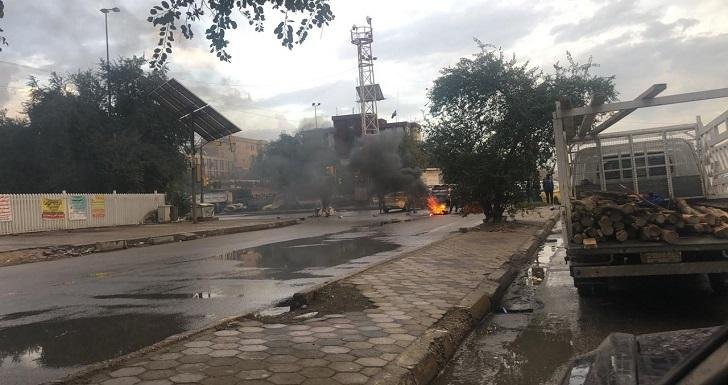 قطع طريق ساحة الاندلس وسط بغداد بالاطارات المحترقة