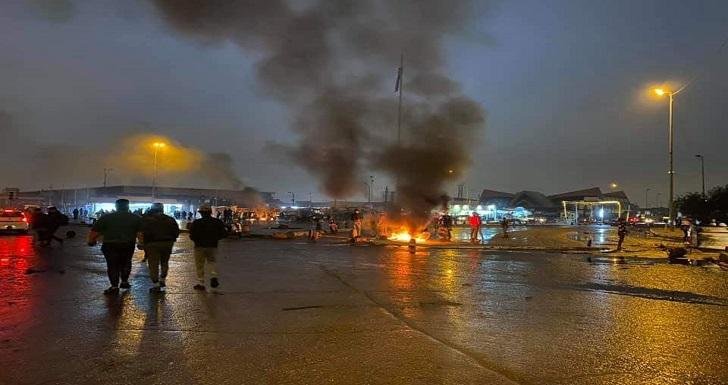 متظاهرون يحرقون اطارات ويحاولون قطع طريق سريع الدورة جنوبي بغداد