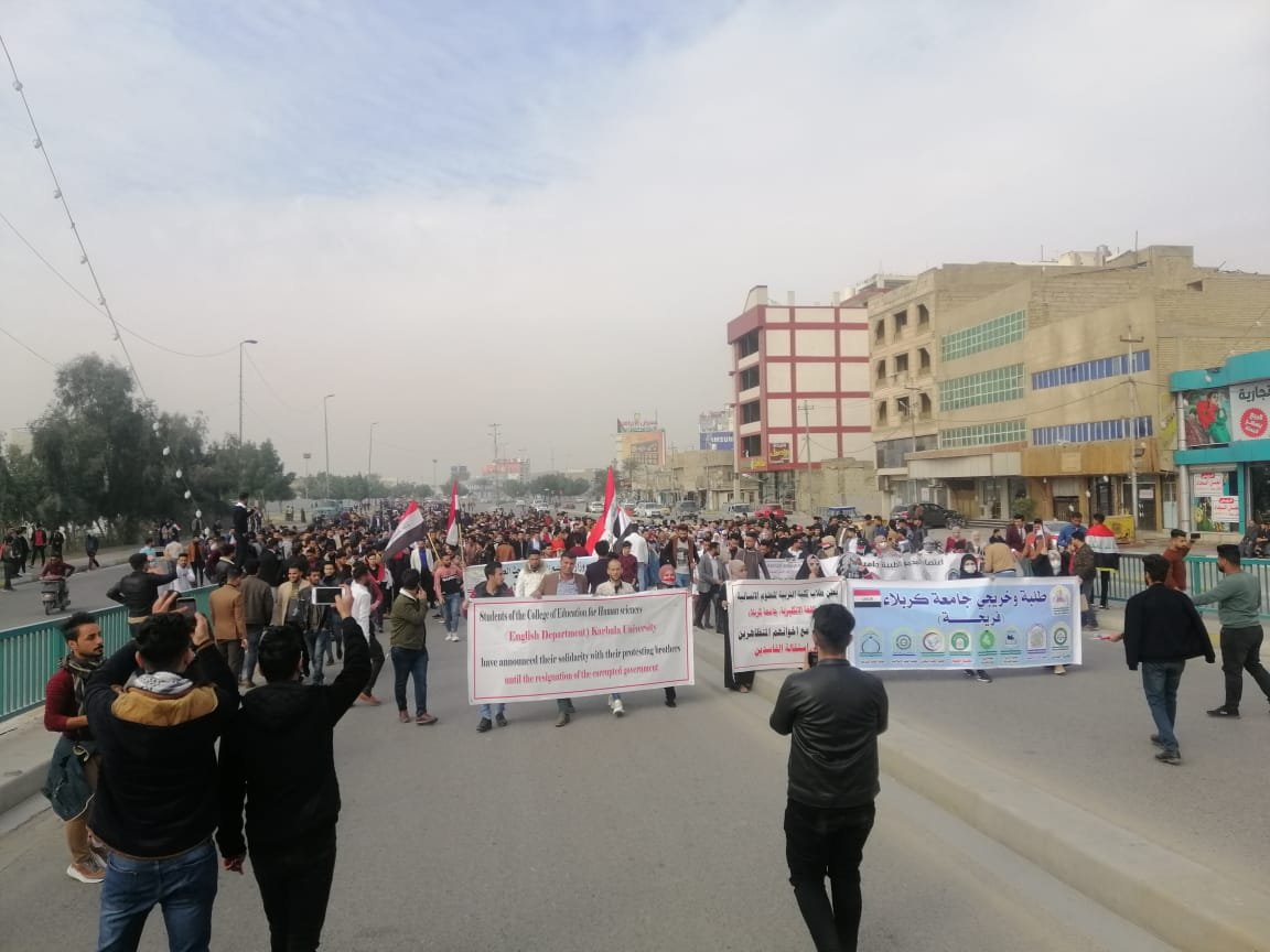 الطلبة الجامعيون في كربلاء ينظمون اعتصاما موحدا