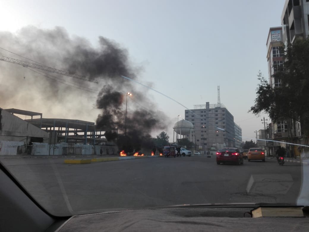 المتظاهرون يقطعون طريق القناة من جهة ساحة مظفر في بغداد