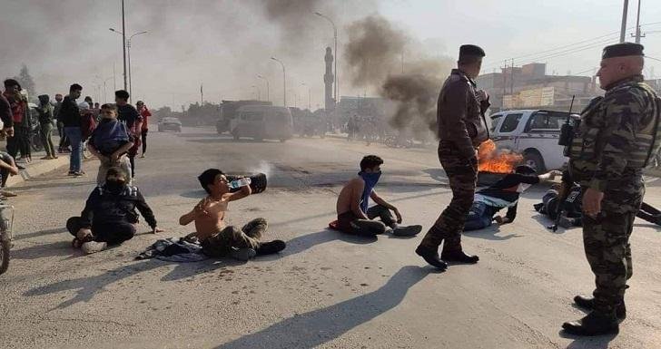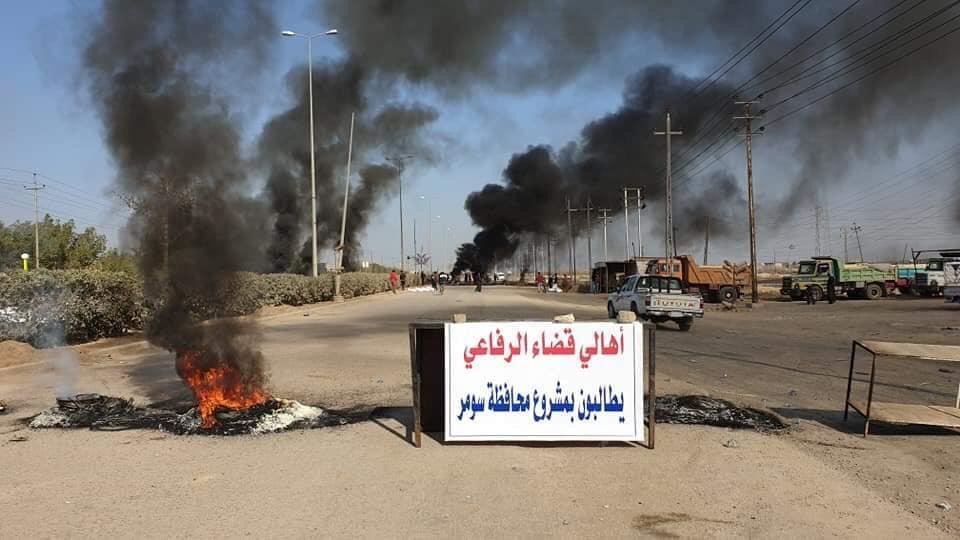 المتظاهرون يقطعون جسرا حيويا وسط ميسان وطريقين رئيسيين شمالها وجنوبها