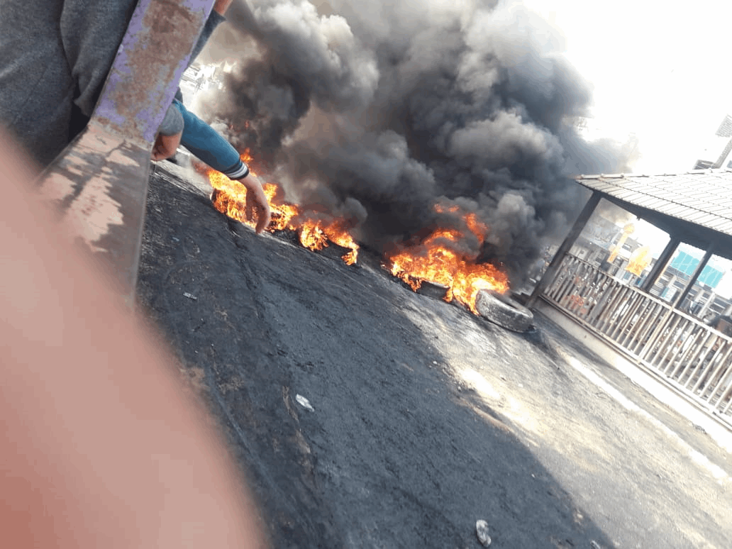 بالصور.. محتجون يقطعون جسر الغراف ويشعلون الإطارات