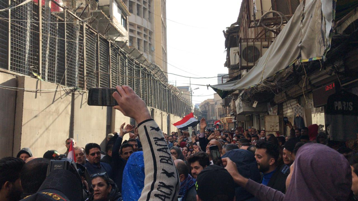 تظاهرة امام مصرف الرشيد في بغداد