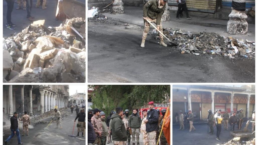 فرقة مشاة عسكرية تنفذ حملة كبرى لتنظيف شارع الرشيد وسط ترحيب المتظاهرين