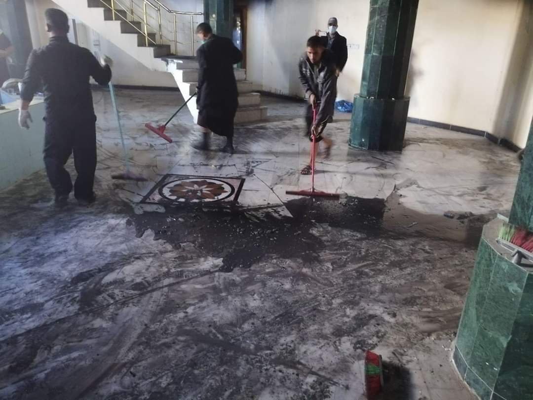 بالصور.. شباب من ذي قار يباشرون بتأهيل مقر الحشد بالمحافظة بعد احراقه امس