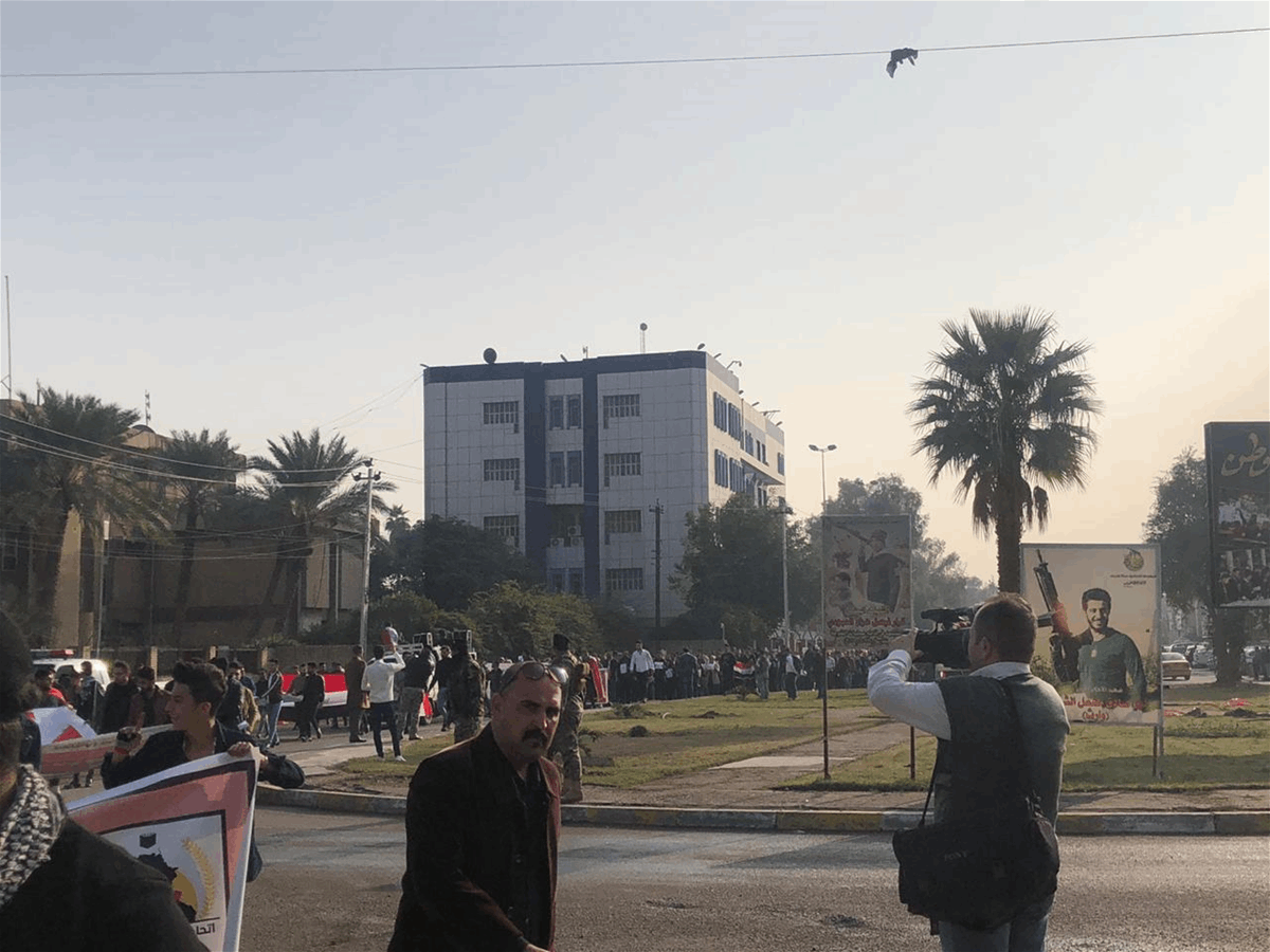 خروج المتظاهرين من بناية "جبل الشهداء" وفتح طريق نجف-كوفة