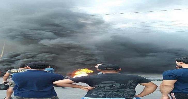 بالصور.. متظاهرون يقطعون الطريق المؤدي لمنفذ سفوان الحدودي