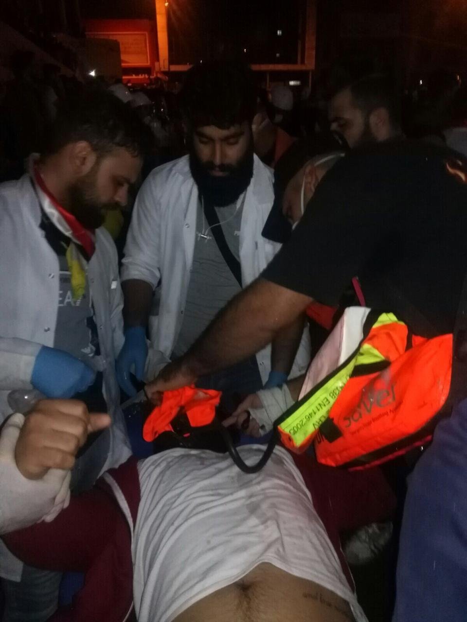 نقل المصابين الذي تم ضربهم بالقنابل المسيلة للدموع على جسر السنك