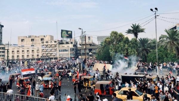 حقوق الانسان: إطلاق نار كثيف على المتظاهرين في ساحة التحرير وحالات اختناق كثيرة بينهم