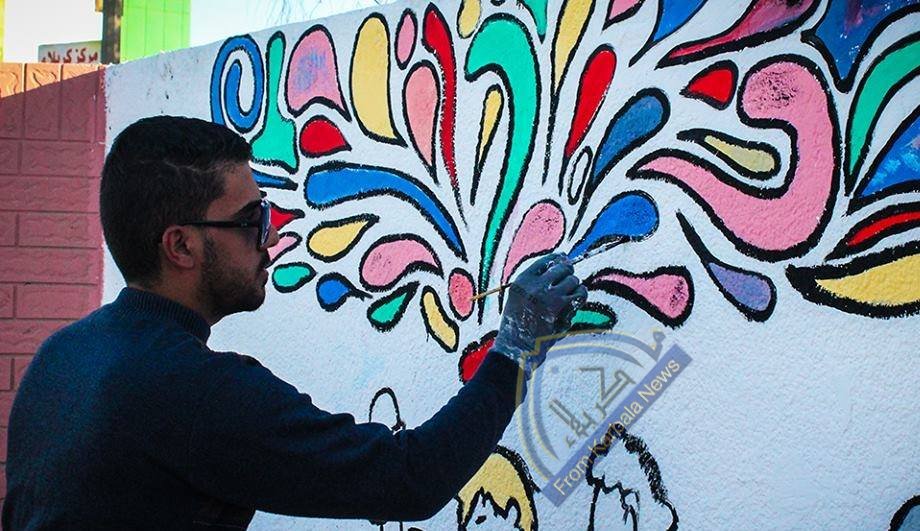 منظمة ( نحن هنا ) تقوم بتزين جدران دوائر ومدارس كربلاء بأعمال فنية