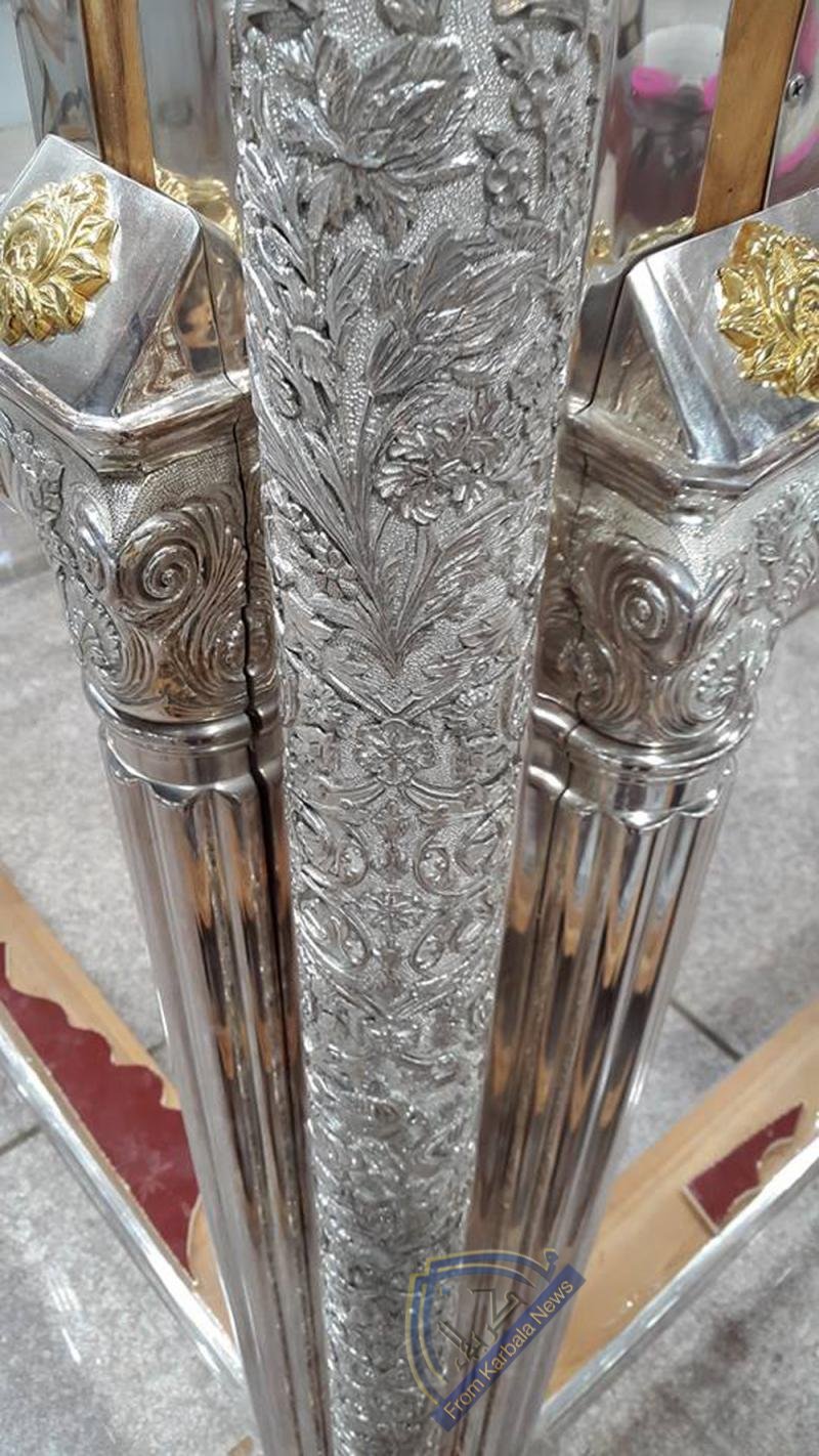 بايدي عراقية الانتهاء من تركيب أعمدة الأركان على الهيكل الخشبي لشباك أبي الفضل العباس(عليه السلام)