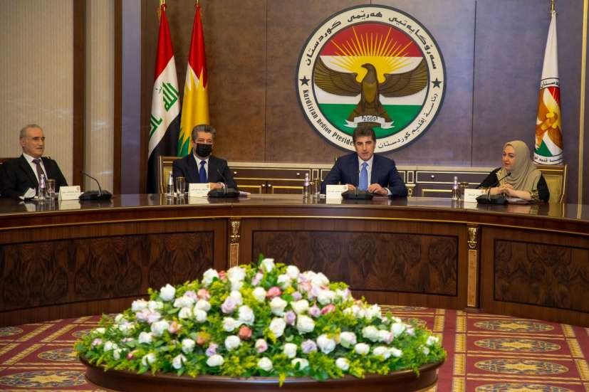 وأكد الرئيس رشيد، أن "العراق حريص على تعزيز الديمقراطية والتعددية واحترام الحقوق والحريات"، مشيرا إلى أن "العلاقة بين الحكومة الاتحادية وحكومة إقليم كردستان جيدة وهناك إرادة لدى الجانبين لحل المسائل العالقة وفقا للدستور والقانون".