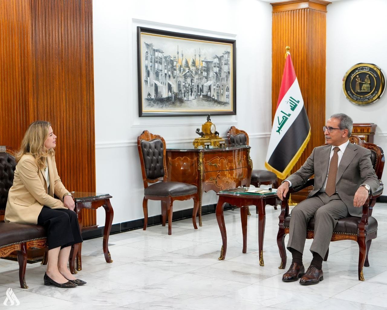 بحث رئيس مجلس القضاء الاعلى القاضي فائق زيدان مع الملحق العدلي في السفارة الأمريكية في بغداد إلين اندريزي الملفات القانونية المشتركة.