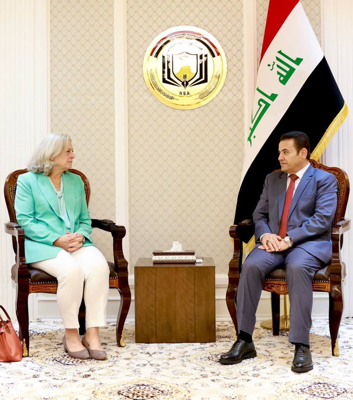 وذكر المكتب الاعلامي لمستشار الامن القومي في بيان، تلقته "من كربلاء الخبر"، أن "الاعرجي استقبل مستشار الأمن القومي قاسم الأعرجي، بمكتبه، السفيرة الأمريكية في بغداد، الينا رومانوسكي".