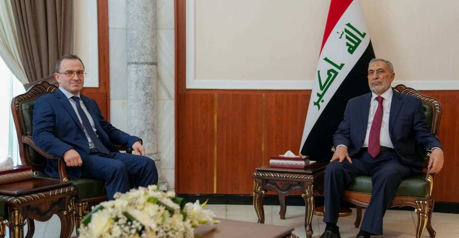 من جانبه، كوتراشيف أكد "على عمق العلاقات التاريخية بين العراق وروسيا"، معربًا عن" استعداد جمهورية روسيا الاتحادية، لدعم القطاعات المشتركة بين البلدين، والمساهمة الفاعلة في تحقيق الاستقرار والتنمية في العراق".