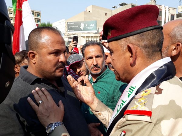 التقى قائد عمليات بغداد الفريق الركن قيس المحمداوي، اليوم الاحد، اعدادا من المتظاهرين والمعتصمين قرب ساحة التحرير في مناطق وسط بغداد.