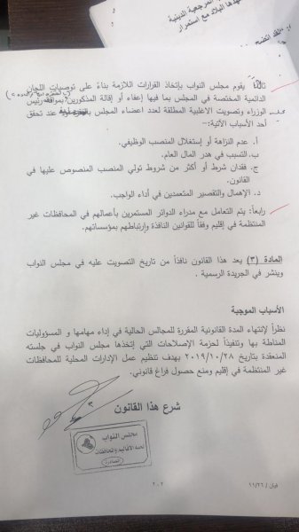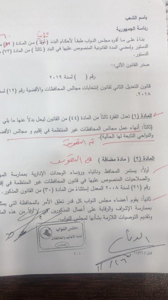 وكان مجلس النواب صوت في وقت سابق من اليوم الثلاثاء، على مقترح قانون التعديل الثاني لقانون انتخابات مجالس المحافظات والأقضية رقم ١٢ لسنة ٢٠١٨.