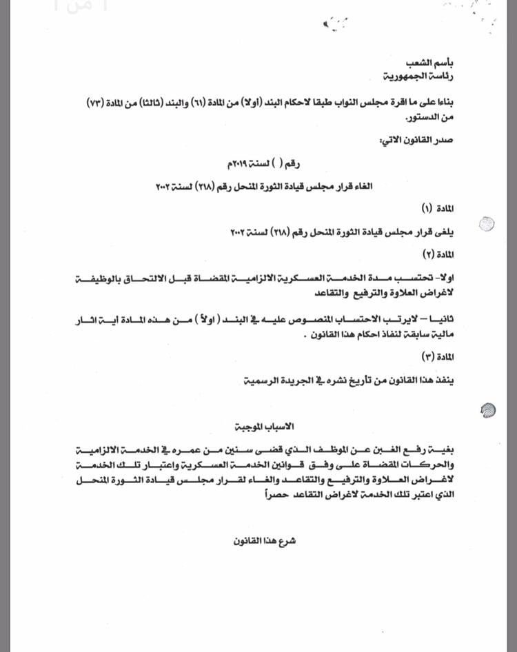 تنشر وكالة من كربلاء الخبر نص قانون احتساب مدة الخدمة العسكرية الإلزامية لأغراض العلاوة والترفيع والتقاعد الذي أكمل البرلمان العراقي قراءته الأولى اليوم
