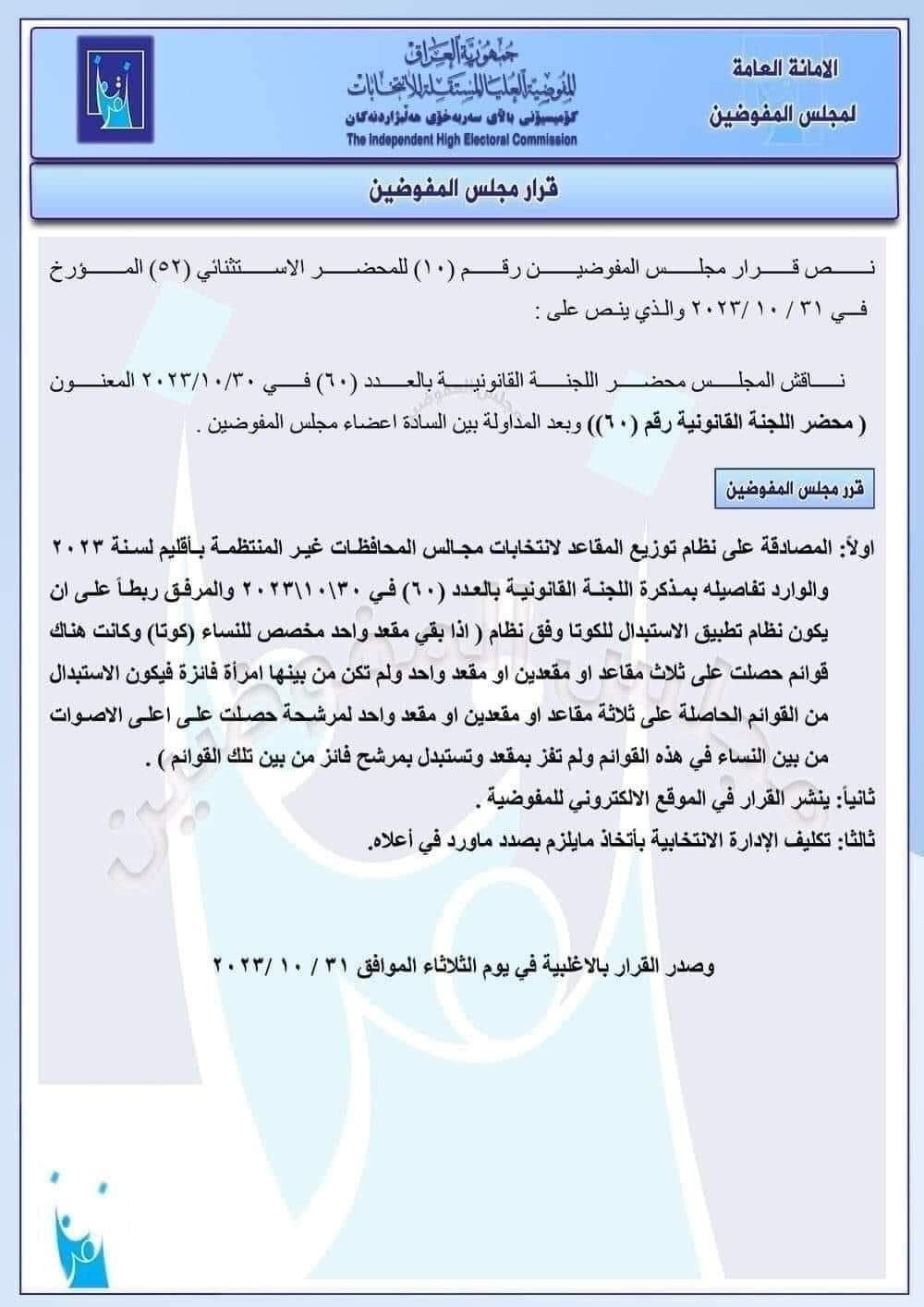 المفوضية تقرر تبديل كوتا النساء بمقعد رجل.. حددته لأعلى الأصوات (وثيقة)