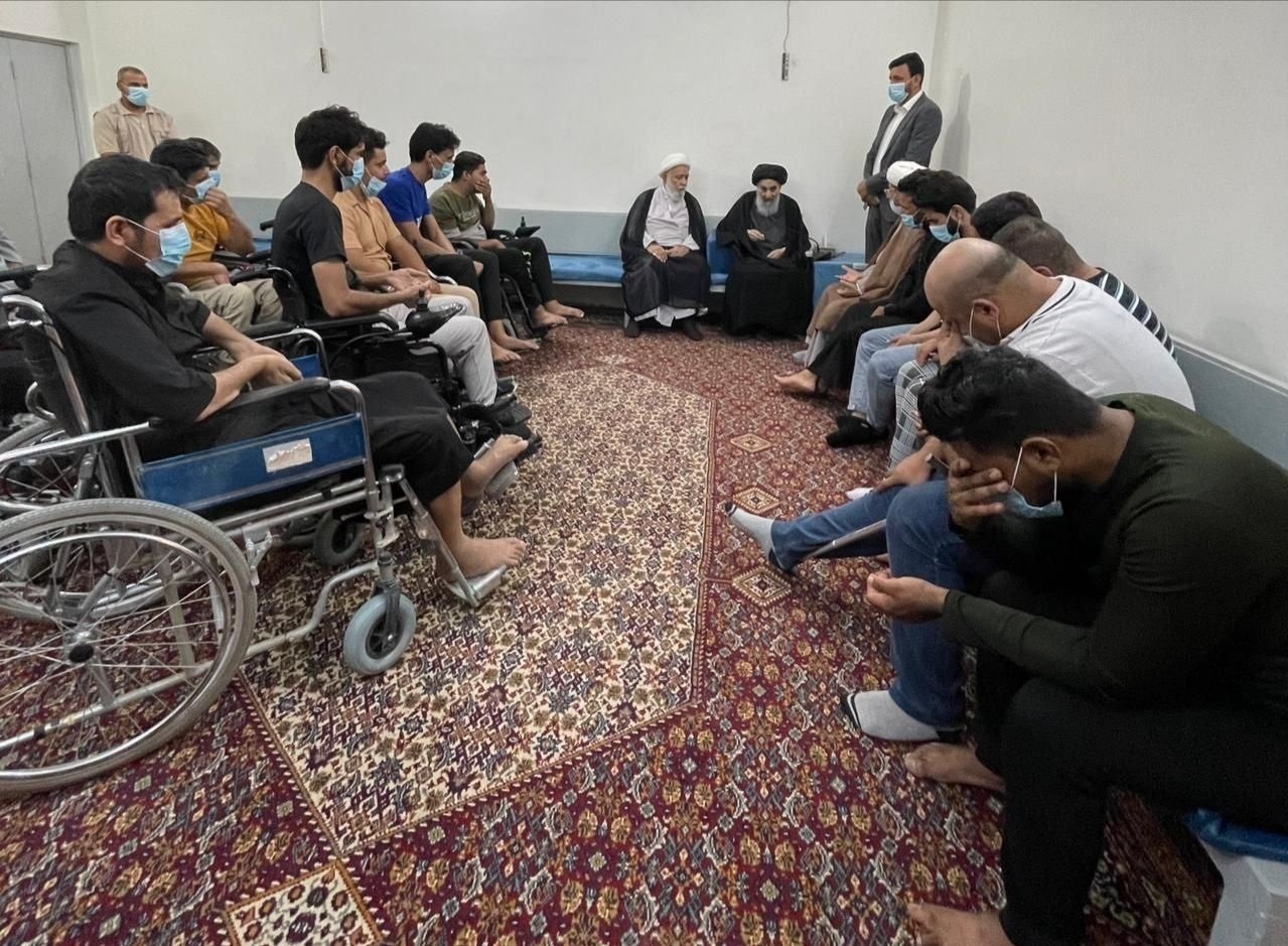 السيد السيستاني يستقبل جمعاً من المقاتلين ممن أصيبوا بالإعاقة في قتال الإرهابيين