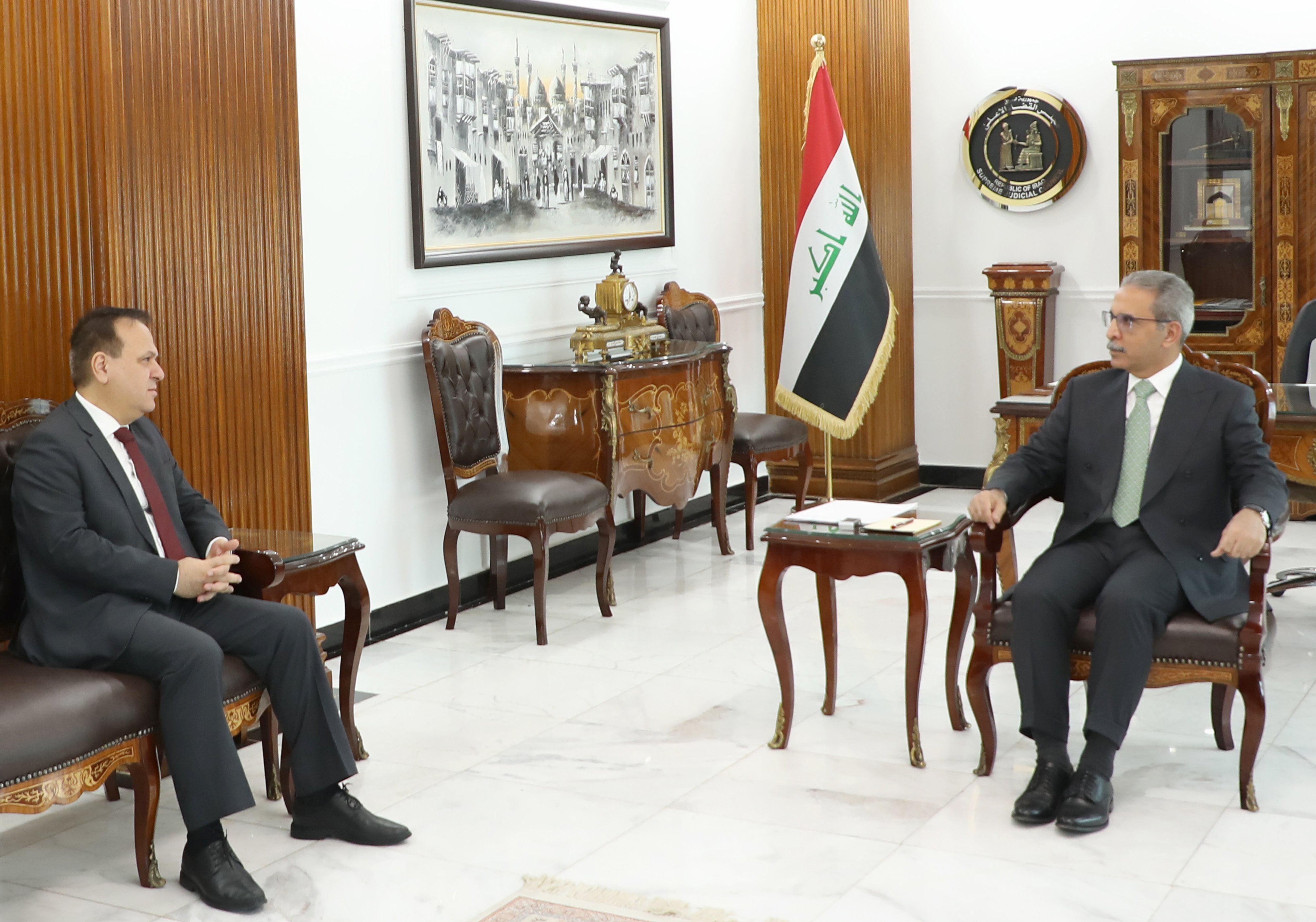 زيدان والسفير اللبناني يبحثان متابعة قضايا المواطنين اللبنانيين بالمحاكم العراقية