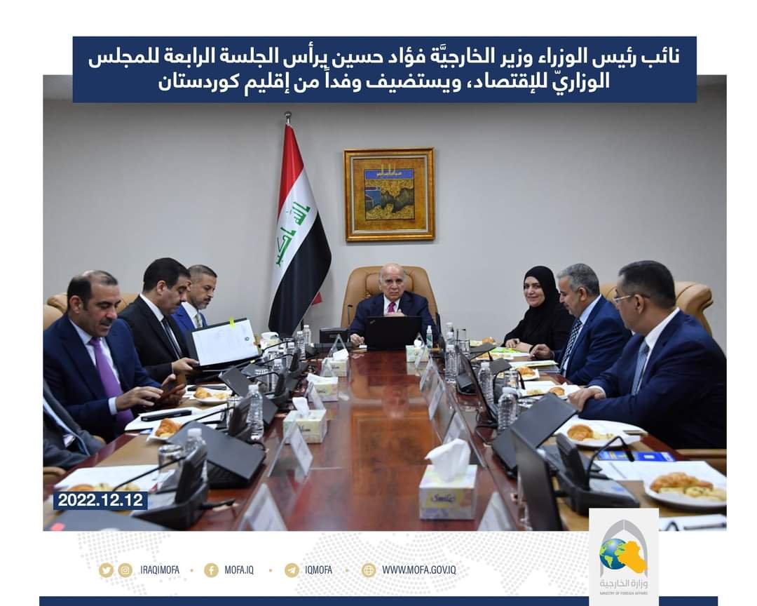 نائب رئيس الوزراء وزير الخارجيَّة يرأس الجلسة الرابعة للمجلس الوزاريّ للإقتصاد، ويستضيف وفداً من إقليم كوردستان
