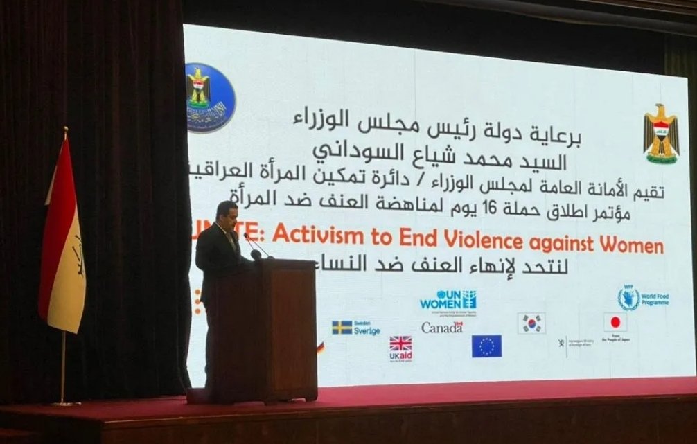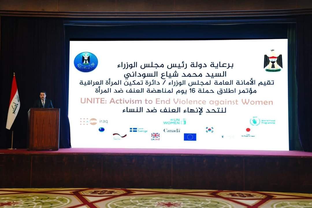 رئيس الوزراء محمد شياع السوداني من مؤتمر اطلاق حملة ١٦ يوم لمناهضة العنف ضد المرأة: