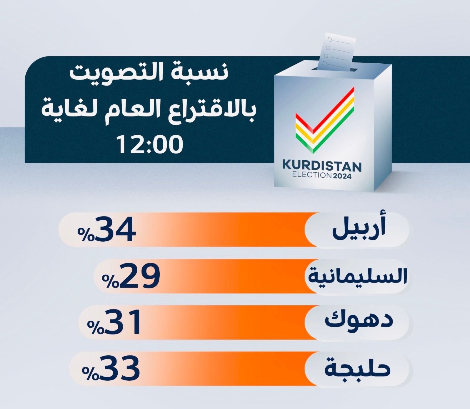 المفوضية: نسبة المشاركة بانتخابات كردستان حتى الساعة 12 ظهراً بلغت 31 بالمئة