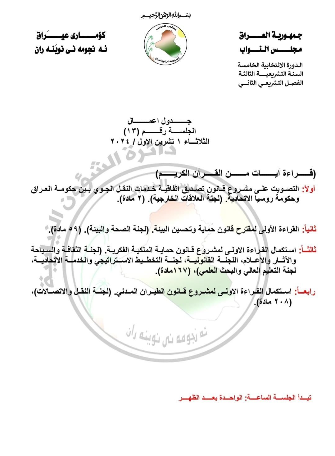 جدول أعمال مجلس النواب ليوم غد الثلاثاء