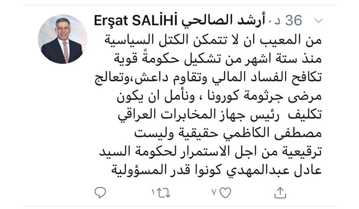 قيادي تركماني: جميع الكتل دعمت الكاظمي لرئاسة الوزراء