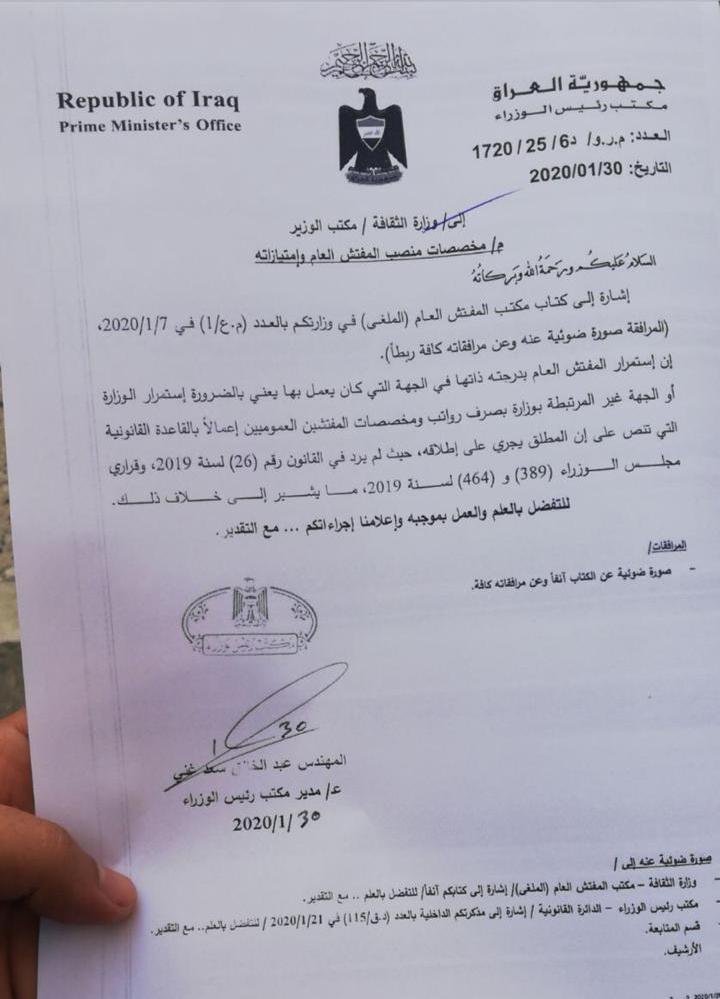 نائبة تكشف بالوثيقة اعادة حكومة تصريف الأعمال استحداث درجة المفتش العام