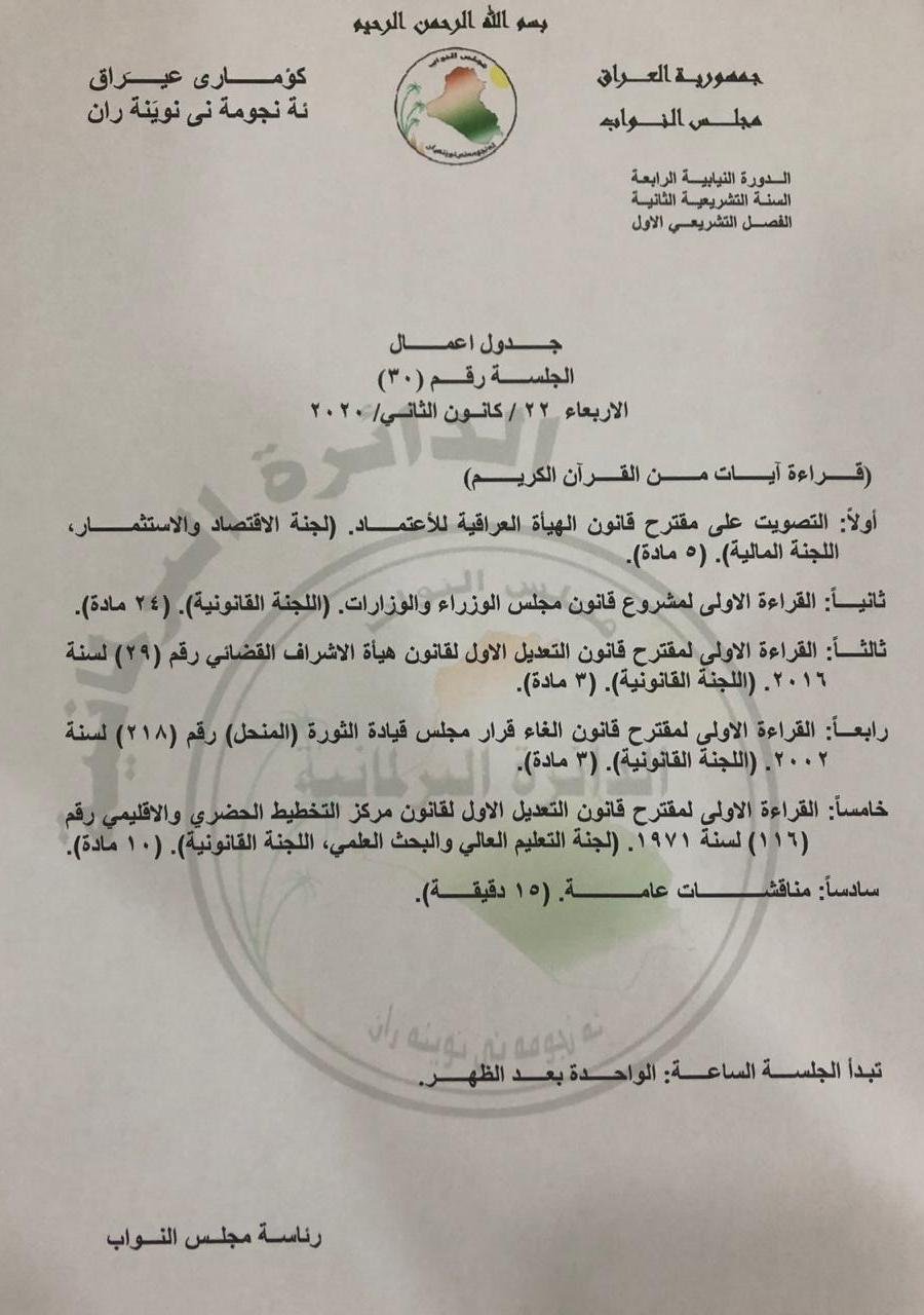 البرلمان ينهي جلسته التداولية ويحدد الاسبوع المُقبل موعداً لانعقاد جلسة