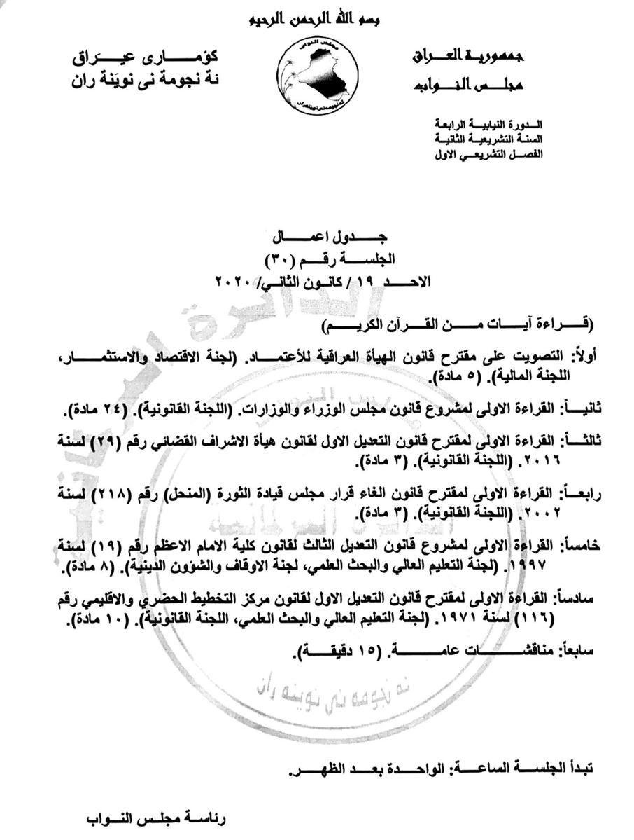 البرلمان يحدد الاربعاء المقبل موعداً لعقد جلسة له