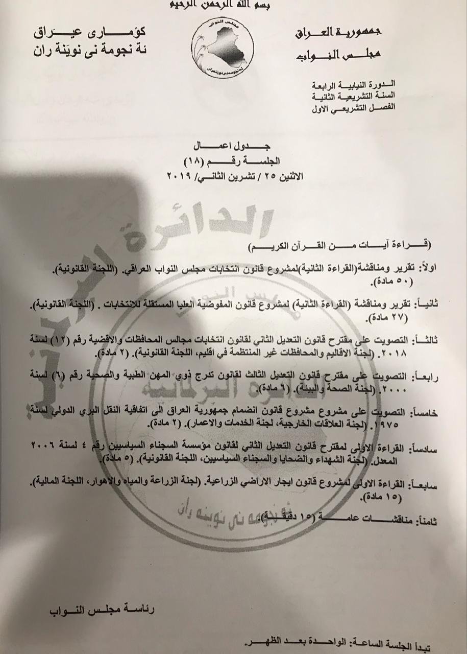 البرلمان يرفع جلسته الى يوم غد الساعة الواحدة ظهرا