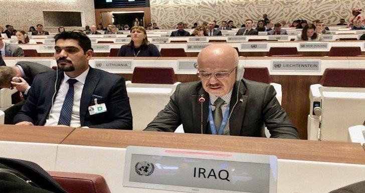 ممثل العراق الدائم في الأمم المتحدة يُلقي بيان المجموعة العربية في اجتماع الدول الأطراف لاتفاقيّة (CCW)