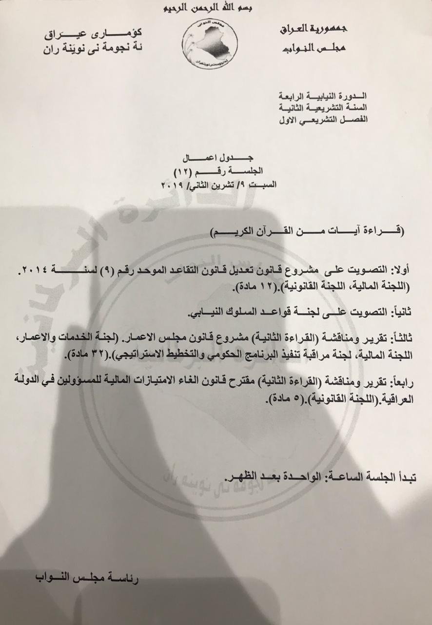 البرلمان ينشر جدول اعمال جلسة اليوم "وثيقة"