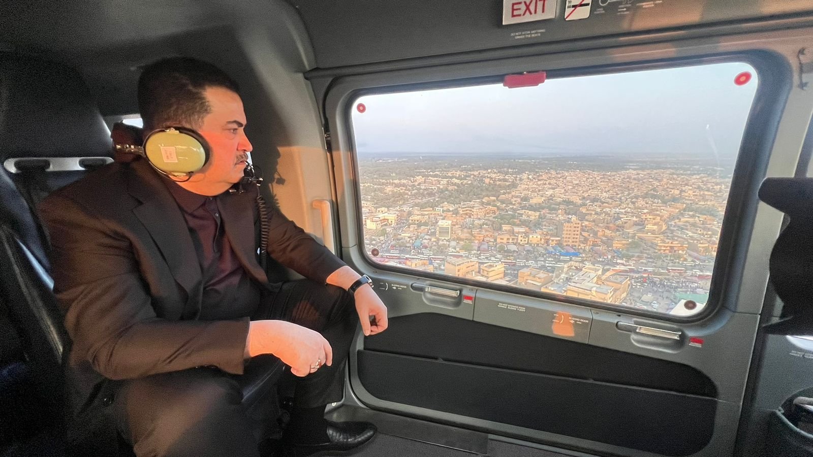 السوداني يستطلع جوياً سير تنفيذ الخطط الأمنية والخدمية حول كربلاء