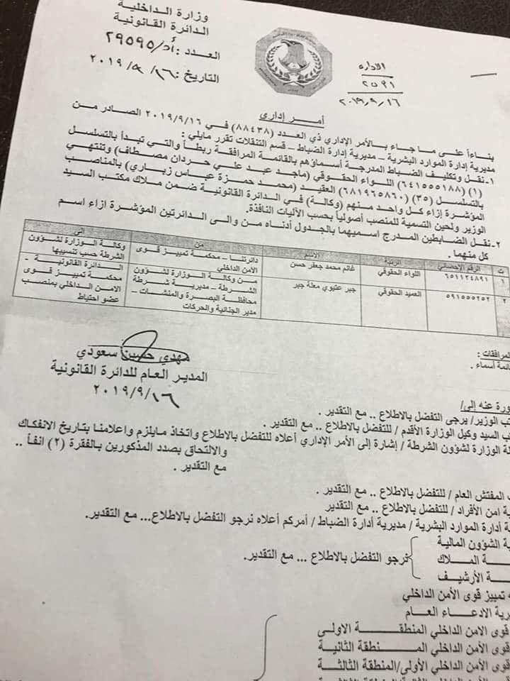 وثائق تكشف تغييرات بعدد من ضباط الداخلية