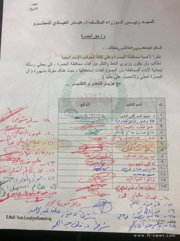 38 نائبا عن محافظة البصرة يطالبون بحقيبتي النفط والنقل