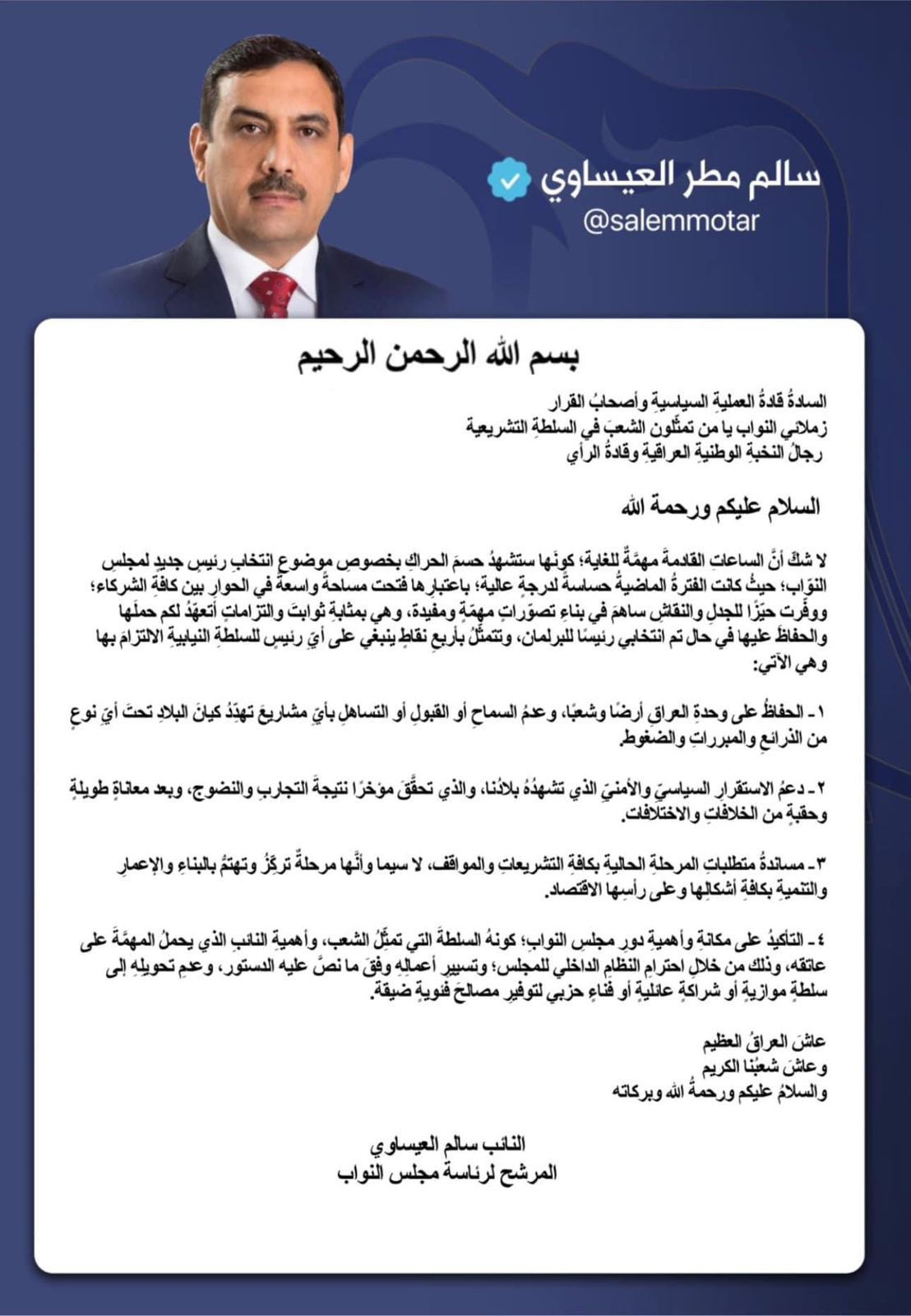 العيساوي يطلق 4 تعهدات لإعادة مهام رئيس البرلمان الى جادة الصواب
